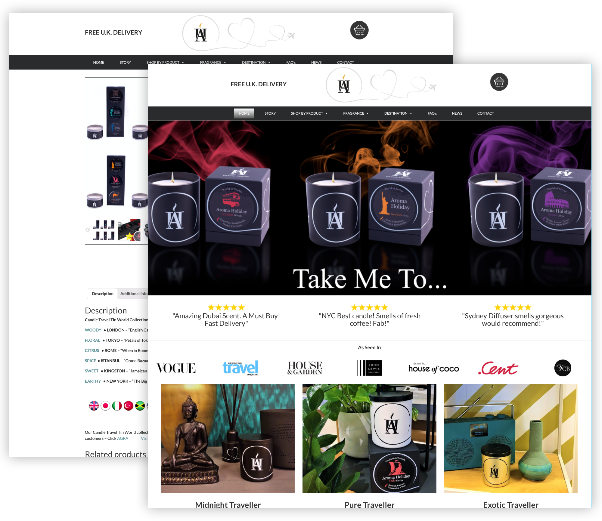 Aroma Holiday luxury candles and home fragrance lifestyle products, uniquely capture the spirit of the World's most beautiful places.
